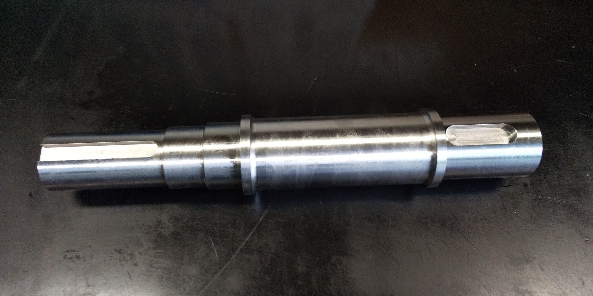 こちらはエレベーターの減速機シャフトとして使用されるシャフト製品で、マシニングでキー溝加工を行っている点に特徴があります。